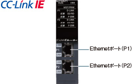 The Ethernet interface unit has two Ethernet ports that can be used as communication ports for Ethernet, CC-Link IE controller network (twisted pair cable), and CC-Link IE field network. In addition, easy-to-identify printing and dot matrix LEDs are used on the front of the unit so that the communication status of the network can be recognized immediately.