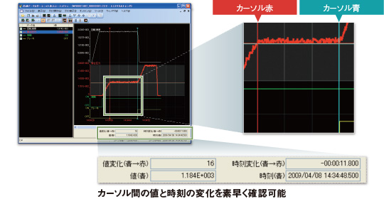 With easy-to-understand operations using two cursors (multi-cursor), you can quickly check data changes within the specified time.