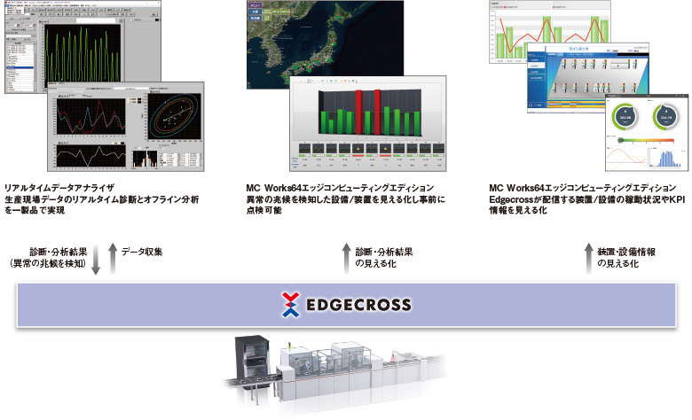 By utilizing the analysis results of the data collected via Edgecross and the know-how that customers have accumulated in the event of troubles, preventive maintenance and equipment downtime when equipment troubles occur are minimized.