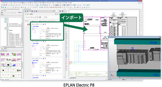 We provide macro data of Mitsubishi FA equipment for Zuken products E3.series and EPLAN products EPLAN Electric P8. Macro data including information such as terminal name / type and device size can be downloaded and pasted on the board drawing, making it easy to create drawings. It is also possible to check the signal connection consistency, check for interference in the panel, and calculate the wiring length. Macro data has registered about 3,200 models such as low-voltage circuit breakers, sequencers, drive units, and display GOTs, and will be expanded in the future.