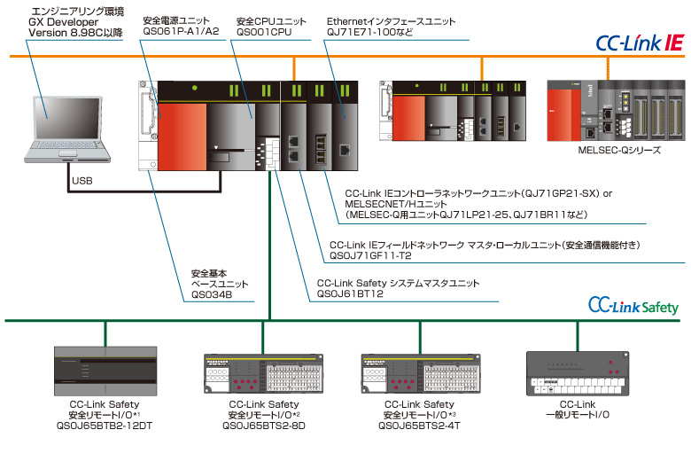 | CC-Link Safety system master | QS0J61BT12 * | Maximum number of stations: 64 (up to 42 safety stations) |