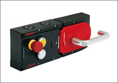 Ideal as a protective measure for doors on safety fences. Functions such as an emergency stop button, illuminated push button, and lamp can be installed in the evaluation unit.
