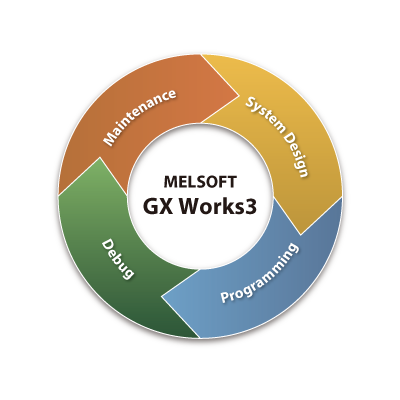 GX Works3 has functions that facilitate project creation (system configuration and programming) and maintenance work (debug, diagnosis, and management).