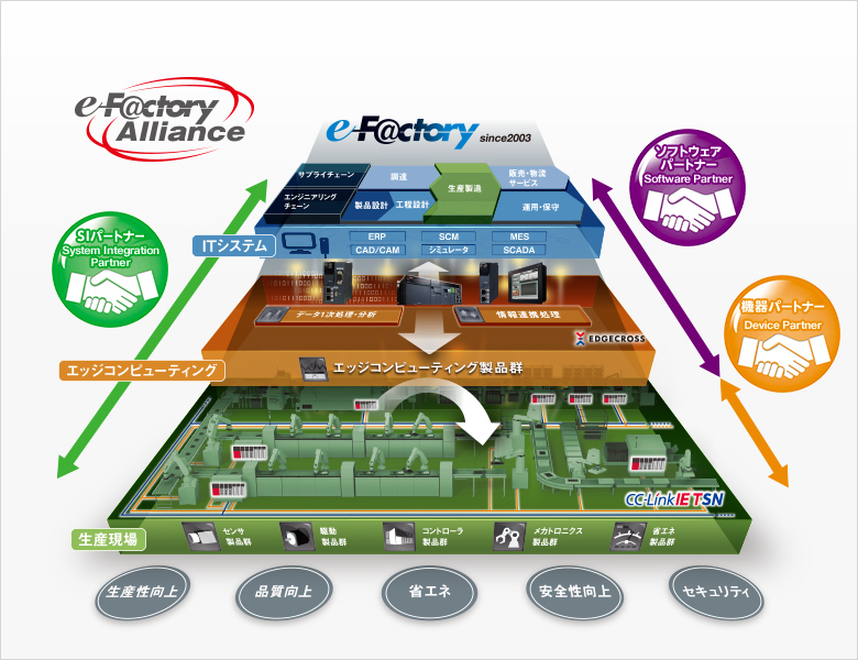 EF @ ctory has collaborated with many partner manufacturers to propose the best solution for customers. Realizing new business creation and new manufacturing through strong collaboration between Mitsubishi Electric, which boasts strong product strength in the FA field, and partners participating in the FA Partner Program eF @ ctory Alliance promoted by Mitsubishi Electric You.