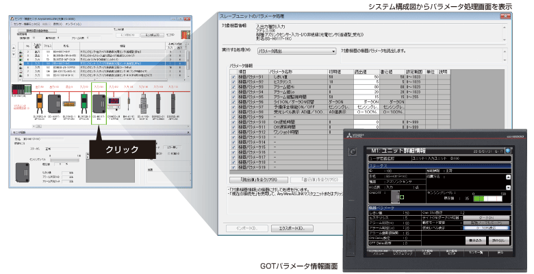can set parameters for sensors from different manufacturers from the engineering environment and GOT with unified operation, thus reducing work time!
