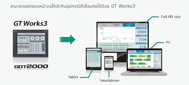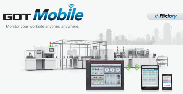 ปัจจุบันโรงงานอุตสาหกรรมได้มีการนำเอาอุปกรณ์ GOT (Graphic Operating  Terminal) มาใช้ในการควบคุมการทำงานของเครื่องจักร รวมทั้งการดูสถานะการทำงานต่างๆของระบบการผลิตในโรงงาน ซึ่งอุปกรณ์ GOT ในปัจจุบันนี้ได้มีการพัฒนาศักย์ภาพด้านการใช้งานให้มีความทันสมัยมากขึ้น โดยได้มีการเพิ่มฟังก์ชั่น GOT Mobile ให้สามารถทำงานร่วมกับอุปกรณ์ประเภท Mobile devices ต่างๆได้ ซึ่งอาศัยเทคโนโลยีทางด้านระบบ IT เข้ามามีส่วนช่วยในด้านการสื่อสารข้อมูลระหว่างกัน ทั้งนี้เพื่อเป็นการเพิ่มขีดจำกัดในการใช้งานเพื่อให้เกิดความสะดวกและมีความหลากหลาย อีกทั้งยังสามารถช่วยประหยัดต้นทุน และยังช่วยเพิ่มประสิทธิภาพในด้านการผลิตให้ดียิ่งขึ้น โดยฟังก์ชั่น GOT Mobile จะมีให้ใช้เฉพาะรุ่น GT25,GT27  ซึ่งจะสามารถเชื่อมต่อการทำงานผ่าน Web Browser ในเครื่อง PC หรือ อุปกรณ์ประเภท Mobile devices ได้อีกด้วย