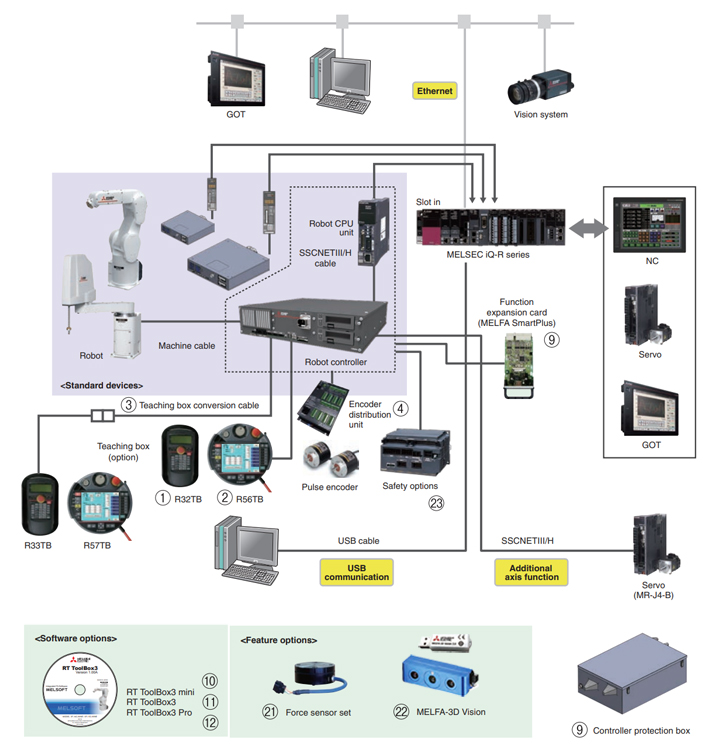 Please refer to the "Catalogs" or the "Manuals" for a robot and the details of the robot arm options.
