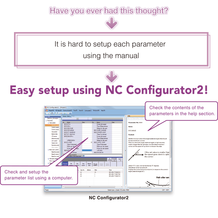| CNC connections | Supported CNCs : M800/M80/M700V/M70V/E70/C80/C70 Series Connection configuration : Ethernet/RS-232C(parameter read/write in serial communication)/USB (C70 Series only) Connectable CNCs : 8 (max.) |
