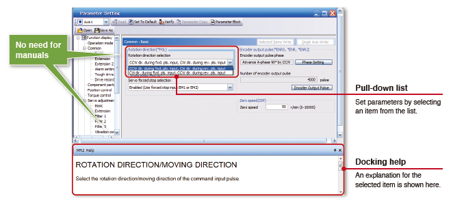 With Docking help and pull-down list, parameters can be set without having to refer to manuals.