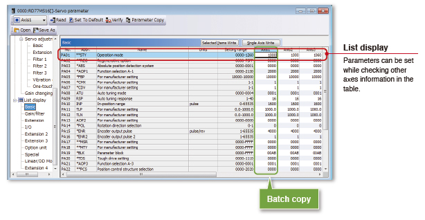 Parameters can be set axis by axis while confirming the detailed explanation for the parameter.