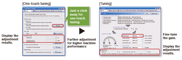 ▪ After one-touch tuning, the control gain can be fine-tuned further on the "Tuning" window. This allows you to pursue more precise, accurate performance.