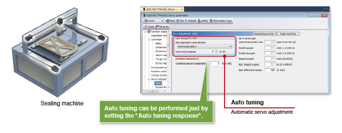 The Auto tuning function is effective even for a high rigidity machine.