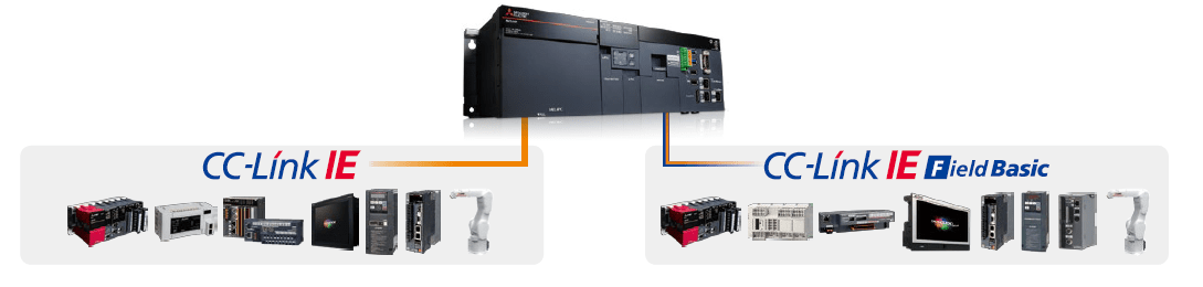 การควบคุมอุปกรณ์ผ่านเครือข่าย CC-Link IE field ทำให้สามารถสื่อสารกับข้อมูลการควบคุมและข้อมูลการผลิตของอุปกรณ์ต่างๆที่เชื่อมต่อด้วยเครือข่าย CC-Link IE field network ได้รวดเร็วถึง 1ms ดังนั้นจึงสามารถควบคุมข้อมูลได้อย่างแม่นยำและสามารถเก็บรวบรวมข้อมูลการผลิตได้อย่างรวดเร็ว นอกจากนี้ MELIPC ยังมีพอร์ตสำหรับเครือข่าย CC-Link IE field และ CC-Link IE field Basic ทำให้สามารถตั้งค่าการเชื่อมต่อกับอุปกรณ์ต่างๆ ได้โดยง่ายนั่นเอง