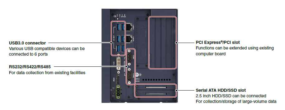 อุปกรณ์ Edge Computing รุ่น MI2000 สามารถรวบรวมข้อมูล และวิเคราะห์ข้อมูลเบื้องต้น รวมไปถึงตรวจสอบข้อมูลที่ได้ทำการเก็บรวบรวมมาได้ ด้วยซีพียู Intel® Core™ และสามารถรองรับอุปกรณ์ต่างๆได้หลากหลาย ด้วย 2.5 inch HDD / SSD slot และ PCI Express ® / PCI slot ทำให้สามารถรวบรวมข้อมูลจำนวนมหาศาลและสามารถเพิ่มฟังก์ชันการทำงานได้ เมื่อทำการติดตั้งบอร์ดอินเตอร์เฟซ CC - Link IE field ใน PCI Express® และสามารถใช้เป็น CC - Link IE field master station / local station ได้