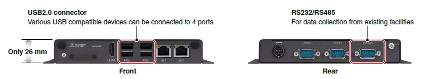 ทั้งหมดนี้ทำให้ง่ายต่อการใช้งานร่วมกับอุปกรณ์ FA อื่นๆ ด้วยอินเตอเฟสเสริมที่หลากหลาย และฮาร์ดแวร์ที่ง่ายต่อการบำรุงรักษา เนื่องจากไม่มีพัดลม ทำให้ไม่จำเป็นต้องทำการบำรุงรักษาหรือเปลี่ยนอุปกรณ์และทำความสะอาด