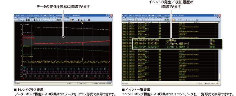 GX LogViewer is a tool for displaying and analyzing large amounts of collected data with simple operations. It can be used for investigating the cause of abnormalities and improving the operating rate.
