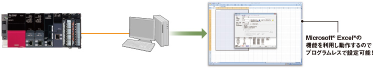 Familiar Microsoft ® Excel ® is a software to make changes, such as the collection / set value of the PLC and motion controller of the monitor / logging / alarm information using.