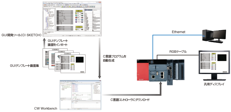 Using a GUI development tool (CI SKETCH), you can develop GUI applications in a visual programming style equivalent to VB / VC.