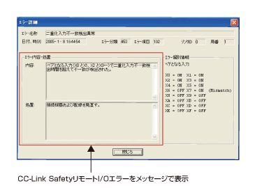 In the case of a safety remote I / O station, the error name, date and time of occurrence, details of error and action are displayed.