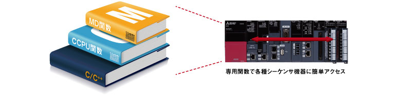Access to C Controller module, I / O module, intelligent function module, network module, PLC CPU and motion CPU, etc. by using C Controller module dedicated function (CCPU function) and MELSEC communication function (MD function) You can create applications that handle PLC devices.