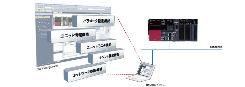 Use CW Configurator to perform parameter setting, diagnosis, monitoring, and testing of various MELSEC iQ-R / Q series modules * 1 (network modules, intelligent function modules, I / O modules, etc.) , including the C Controller module. Easy to do. Also, CW Configurator can be used with the same operability as the programming software GX Works3 for MELSEC iQ-R.