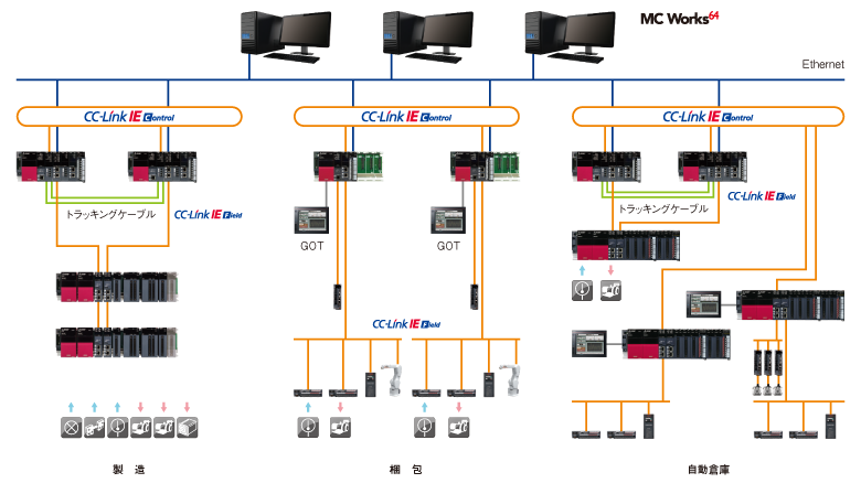 MELSEC iQ-R series, MELSEC-Q series, MC Works64, from process monitoring control, utility monitoring control, and production management of the manufacturing process in the manufacturing plants of chemical products such as pharmaceuticals, cosmetics, detergents, paints, and high-performance materials , And propose a total solution by the display GOT.