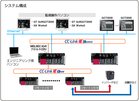 Environmentally resistant GOT at the site and monitoring operation such as PID adjustment at the monitoring PC of the monitoring room by linking PX Developer monitor tool and GT SoftGOT2000 . The instrumentation monitoring screen for GOT is automatically generated by the PX Developer monitor tool, and the same screen is used in GT SoftGOT2000.