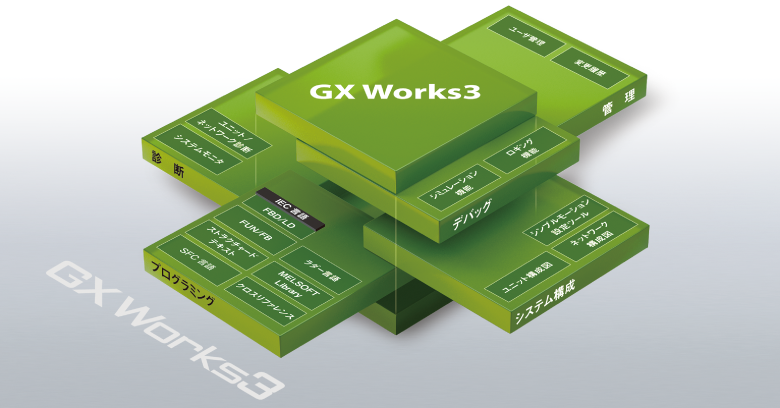 GX Works3 has functions that facilitate project creation (system configuration and programming) and maintenance work (debug, diagnosis, and management).