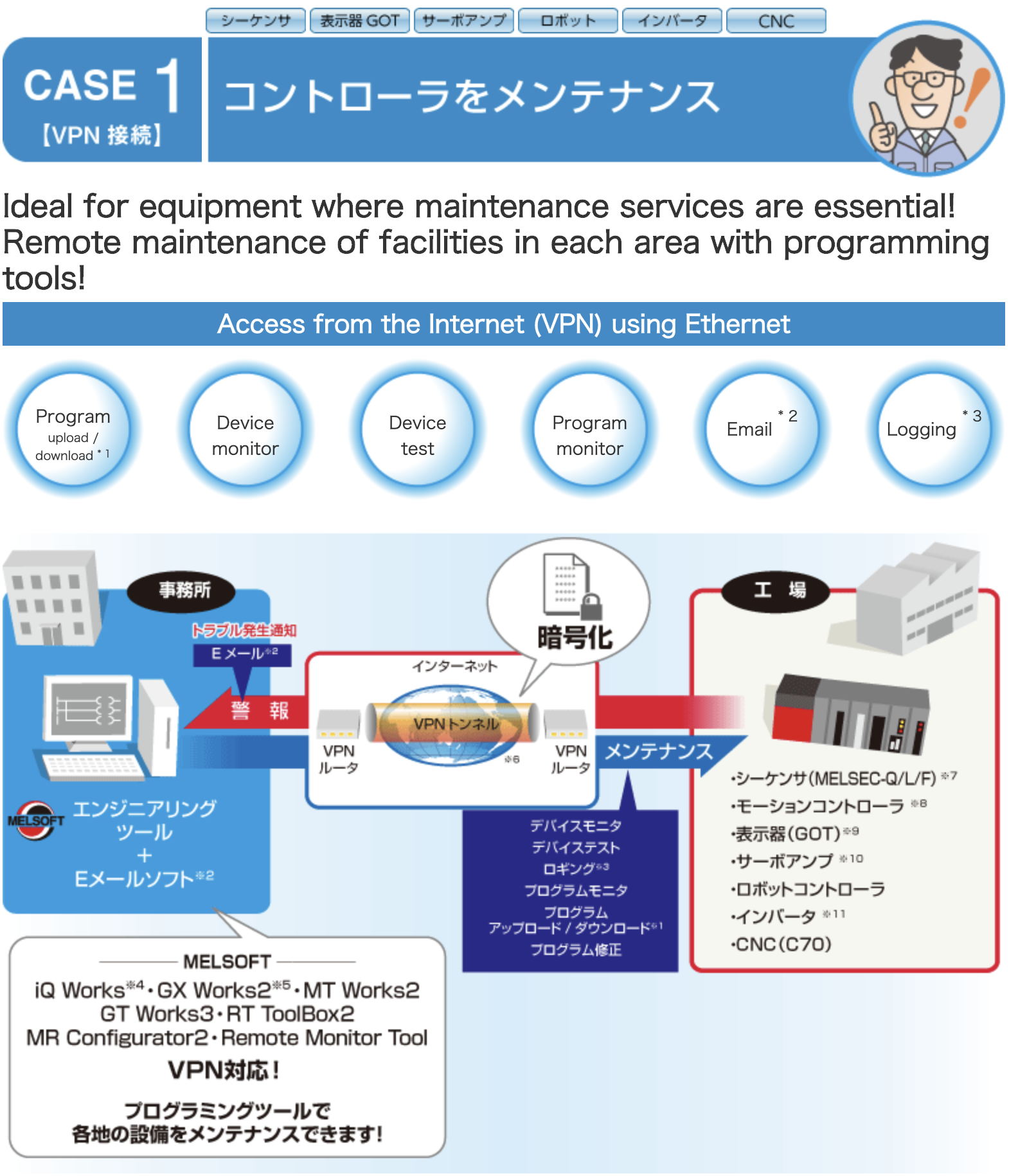※Four) iQ Works is a product that integrates engineering software. GX Works2, MT Works2, GT Works3, RT ToolBox2 are included.