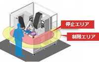- When a worker enters the restricted area, the robot operation speed is restricted