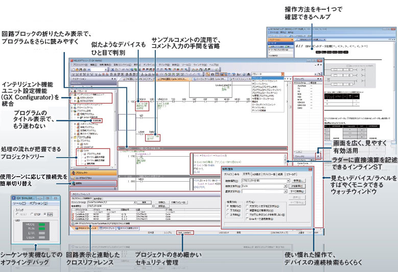 The engineering software GX Works2 has been developed with consideration to make it easy for anyone to program, debug and maintain with intuitive operation. In a comfortable operation environment, design efficiency is further improved.