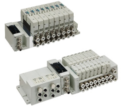Driving of air cylinder, hand, etc. is possible. Because of the manifold type, large actuators can be driven in a small space.