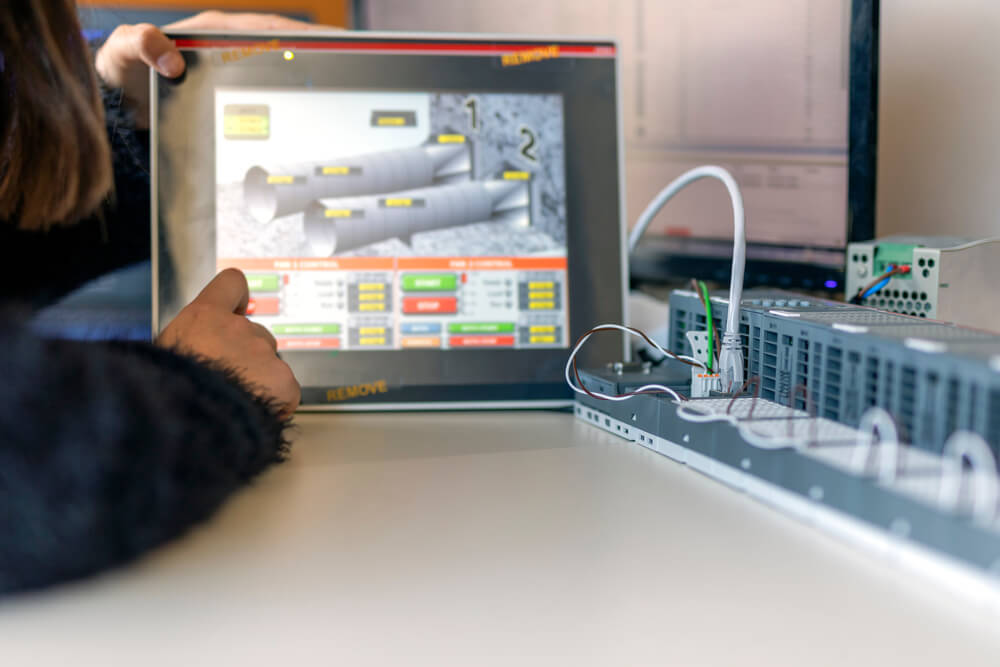 • ช่วยให้การตั้งค่าต่าง ๆ ง่ายต่อการทำความเข้าใจของพนักงานมากขึ้น เพราะสามารถควบคุมและแก้ปัญหาต่าง ๆ ที่ตัว PLC ผ่านหน้าจอแสดงผลก่อนได้ จึงลดความซับซ้อนที่ตัวเครื่องจักรและแผงวงจร