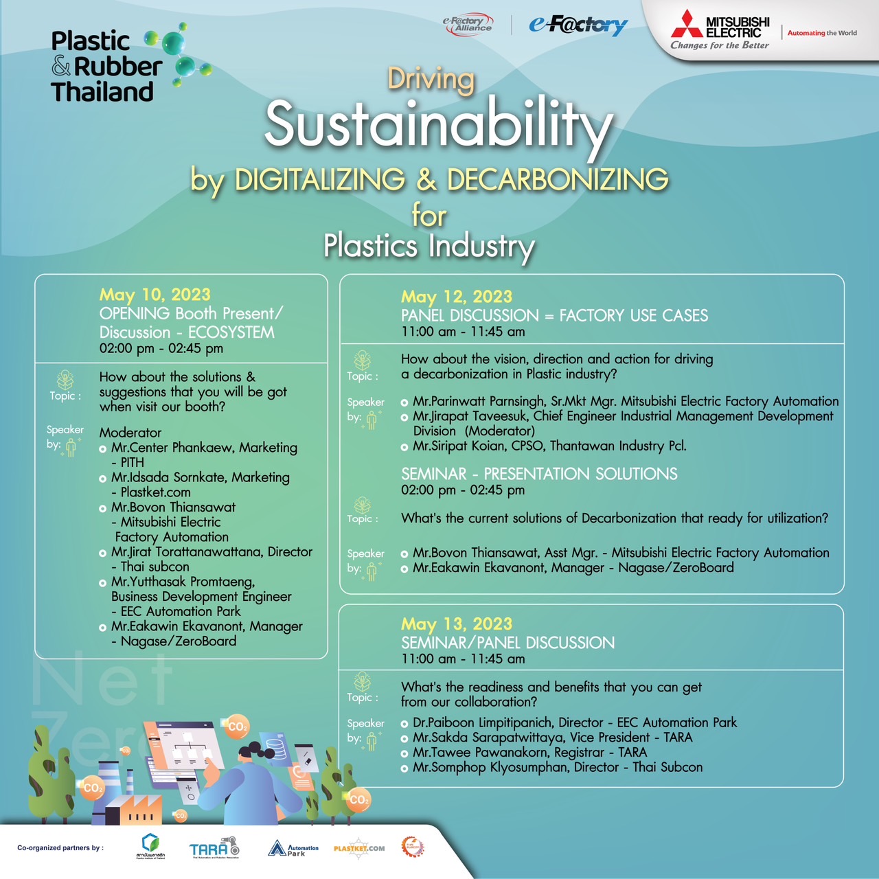 นอกจากนั้น ภายในงาน วันที่ 11 พฤษภาคม 2566 เวลา 11.00-11.45 น. ยังมีการอภิปรายในหัวข้อ วิสัยทัศน์และความมุ่งมั่นของผู้บริหารในการร่วมมือขับเคลื่อนความยั่งยืนในอุตสาหกรรมพลาสติกโดยวิทยากรและผู้บริหารระดับสูงจากองค์กรต่างๆที่เกี่ยวข้องมาให้ความรู้ ได้แก่