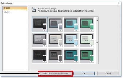■ เลือกเทมเพลตการออกแบบหน้าจอที่ติดตั้งไว้แล้ว ใน GT Designer3 ได้หลายรูปแบบ