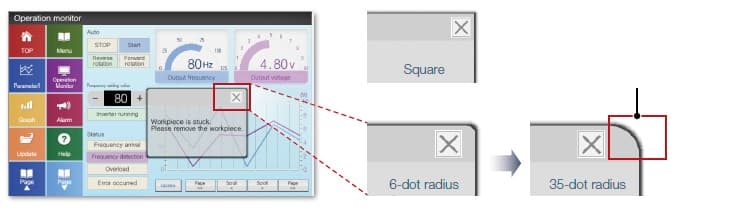 บน MELSOFT GT Works3 สามารถช่วยให้หน้าจอ GOT ทำงานได้อย่างง่ายดาย ด้วยเครื่องมือการใช้งานเริ่มต้นที่พร้อมสำหรับการออกแบบ