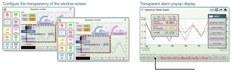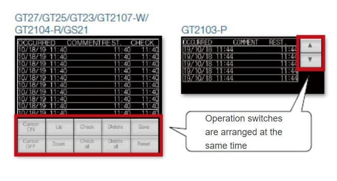 ■ สามารถปรับเปลี่ยนคำสั่งที่เหมาะสม เมื่ออุตสาหกรรมมีการเปลี่ยนรุ่นหน้าจอ GOT เช่น การแสดงสัญญาณเตือน, การแสดงสัญญาณเตือนอย่างง่าย, การแสดงสัญญาณเตือนระบบ, การแสดงรายการข้อมูลในอดีต, การแสดงรายการข้อมูล, การแสดงสูตรอาหาร (รายการบันทึก)
