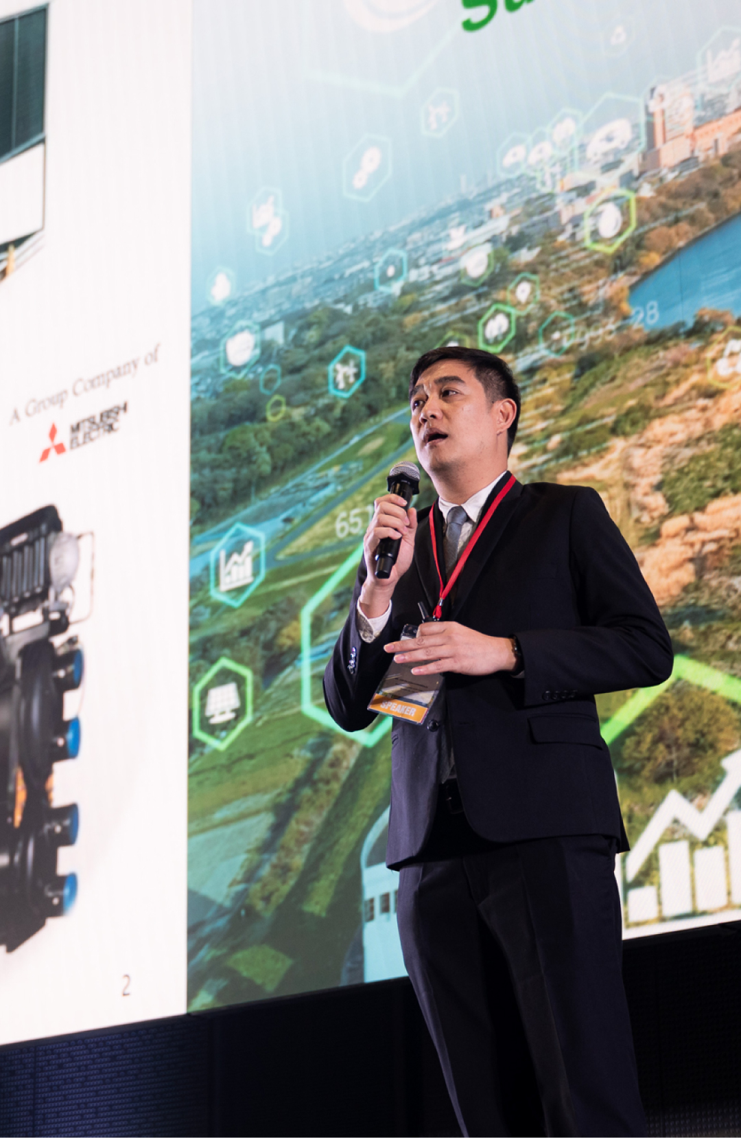 “ในงานวันนี้เราตั้งใจกำหนดหัวข้อการบรรยาย ให้ความรู้ที่น่าสนใจของระบบอัตโนมัติที่ใช้ในการบริหารจัดการอาคารอัจฉริยะตอบโจทย์ด้านความยั่งยืน ซึ่งเราเล็งเห็นโอกาสว่าทุกภาคส่วนจะสามารถประสบความสำเร็จไปด้วยกันภายใต้เป้าหมายด้านความยั่งยืนที่ต้องร่วมกันลดปริมาณก๊าซเรือนกระจกที่ปล่อยขึ้นสู่ชั้นบรรยากาศและเป็นสาเหตุของภาวะโลกร้อนด้วยความร่วมมือกัน โดยทางกลุ่ม Mitsubishi Electric มีความพร้อมที่ทำงานร่วมกันกับทั้งบริษัทในเครือและรวมถึงบริษัทพันธมิตรของลูกค้าทั้งที่เป็นหน่วยงานภาครัฐและเอกชนเพื่อบรรลุเป้าหมายนี้ไปด้วยกัน”