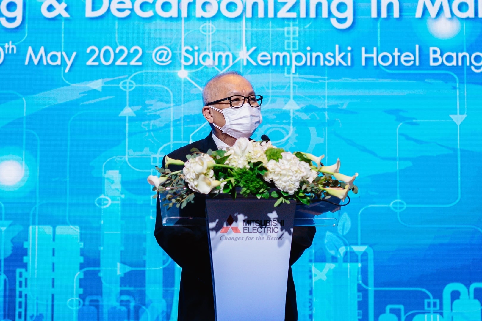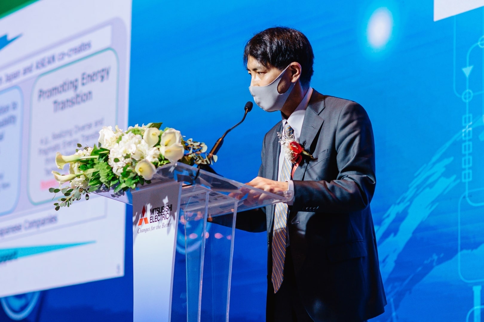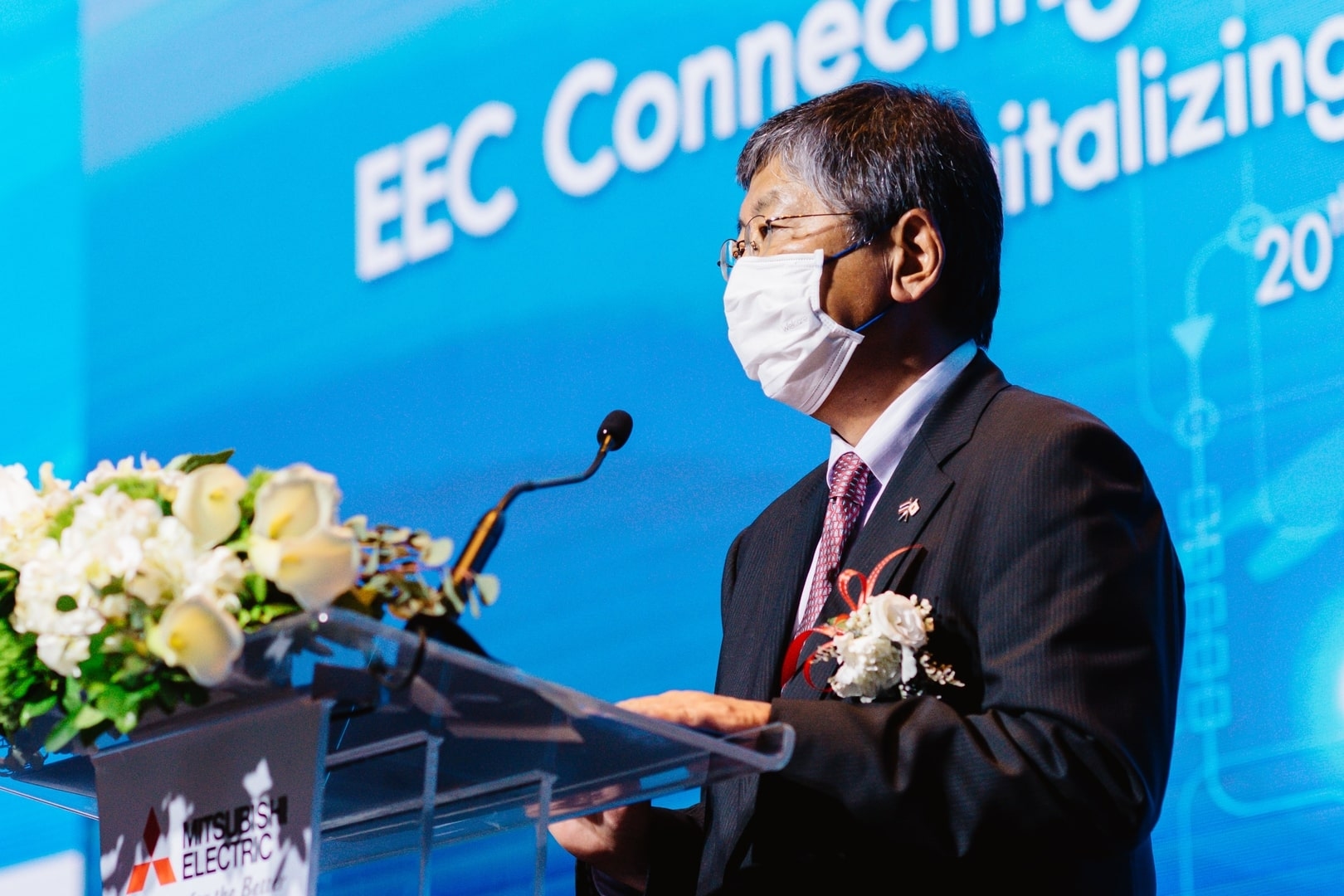 ด้าน นายนาชิดะ คาซูยะ เอกอัครราชทูตญี่ปุ่นประจำประเทศไทย เผยว่า “ประเทศไทยเป็นพันธมิตรที่สำคัญยิ่งสำหรับประเทศญี่ปุ่น ปัจจุบันมีบริษัทญี่ปุ่นเข้ามาทำธุรกิจในประเทศไทยประมาณ 6,000 บริษัท ซึ่งการลงทุนของบริษัทต่างชาติในประเทศไทยนั้น ญี่ปุ่นยังคงครองแชมป์ทั้งด้านปริมาณการลงทุนและมูลค่าการลงทุน โดยอุตสาหกรรมการผลิตคิดเป็นสัดส่วนราว 40% จึงอาจกล่าวได้ว่าเป็นประวัติศาสตร์ที่สร้างขึ้นจากความร่วมแรงร่วมใจของบริษัทไทยและบริษัทญี่ปุ่นที่เกี่ยวข้องกับอุตสาหกรรมการผลิต โดยเน้นอุตสาหกรรมยานยนต์เป็นหลัก โดยมีเขตพัฒนาพิเศษภาคตะวันออก หรือ อีอีซี เป็นเวทีสำคัญของการพัฒนา ปัจจุบันอุตสาหกรรมการผลิตกำลังก้าวเข้าสู่รูปแบบใหม่ ด้วยการพัฒนาเทคโนโลยีและนวัตกรรมแบบ “Digital” และ “Green” ด้วยมีความจำเป็นอย่างยิ่งที่จะต้องนำเทคโนโลยีดิจิทัล (Digital Transformation) มาใช้ในหน้างานผลิต เพื่อปรับปรุงประสิทธิภาพการผลิตแบบก้าวกระโดด และการใช้เทคโนโลยีดิจิทัลในด้านการตลาด จะช่วยขยายห่วงโซ่คุณค่าของบริษัทที่เกี่ยวข้องกับการผลิต โดยคำนึงถึงธุรกิจแบบ “B to B to C” ด้วย ดังนั้น องค์ความรู้ของบริษัทญี่ปุ่น ด้าน Factory Automation ใน “EEC Automation Park” ณ มหาวิทยาลัยบูรพา ซึ่งจัดตั้งโดยบริษัท Mitsubishi Electric ซึ่งเป็นผู้จัดงานวันนี้ ถือเป็นตัวอย่างที่ดีของความร่วมมือระหว่างภาคอุตสาหกรรม ภาคการศึกษา และภาครัฐของประเทศไทยและประเทศญี่ปุ่น นอกจากนี้ ประเทศญี่ปุ่นพร้อมจะสนับสนุนความพยายามของประเทศไทยในการลดการปล่อยก๊าซคาร์บอน ตามเป้าหมายความเป็นกลางทางคาร์บอน (Carbon Neutral) ภายในปี พ.ศ. 2593 และจะปล่อยก๊าซเรือนกระจกเป็นศูนย์ ภายในปี พ.ศ. 2608 โดยให้ความร่วมมือทั้งภาครัฐและเอกชน ด้วยความเชี่ยวชาญพิเศษในการออกแบบผลิตภัณฑ์ที่ประหยัดพลังงานและเป็นมิตรต่อสิ่งแวดล้อม ผู้ผลิตรถยนต์ของประเทศญี่ปุ่นได้พัฒนาผลิตภัณฑ์ที่มีผลกระทบต่อสิ่งแวดล้อมต่ำ เช่น รถไฮบริด (HV) หรือ อีโคคาร์ ให้เป็นที่นิยมแพร่หลาย ในด้านแบตเตอรี่ EV ผู้ผลิตญี่ปุ่นก็คงจะช่วยนำพาอุตสาหกรรมยานยนต์ของไทยให้ขับเคลื่อนไปเช่นกัน นอกจากนี้ ญี่ปุ่นยังมีผู้เล่นที่มีความศักยภาพสูงอยู่มากมายในด้านพลังงานขั้นสูง เช่น ไฮโดรเจน เชื้อเพลิงแอมโมเนีย CCS ฯลฯ ซึ่งจำเป็นอย่างยิ่งสำหรับการบรรลุเป้าหมายความเป็นกลางทางคาร์บอน ซึ่งความร่วมมือไทย-ญี่ปุ่นด้าน “Digital” และ “Green” ซึ่งในเร็ว ๆ นี้ ภาคเอกชนจะย้ายเข้าสู่ระยะลงมือปฏิบัติในฐานการผลิตที่อยู่ในเขตพัฒนาพิเศษภาคตะวันออก และคงจะนำมาซึ่งผลลัพธ์ที่แน่นอน”จะเป็นหัวใจสำคัญส