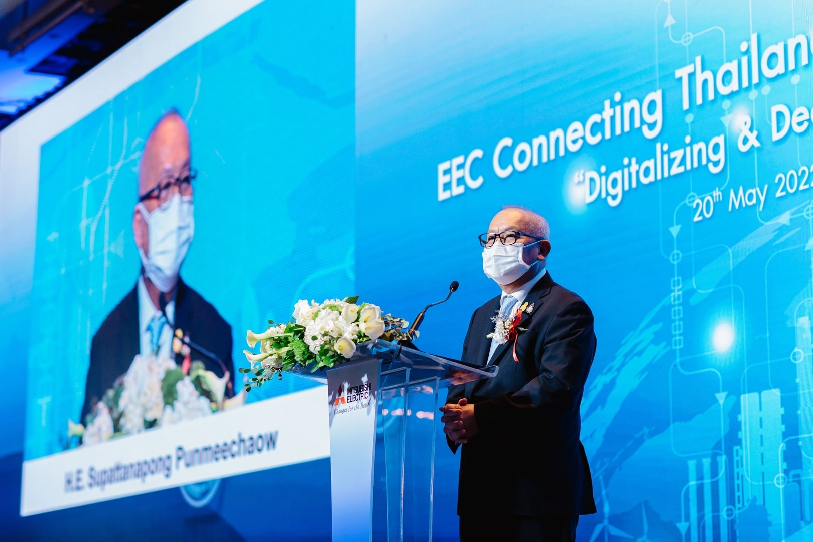 นายสุพัฒนพงษ์ พันธ์มีเชาว์ รองนายกรัฐมนตรี และรัฐมนตรีว่าการกระทรวงพลังงาน ประธานในพิธี กล่าวเปิดงานว่า “ผมขอแสดงความยินดี และขอบคุณในความร่วมมืออย่างดีเสมอมา ระหว่างประเทศญี่ปุ่น และประเทศไทย โดยมี อีอีซี เป็นสะพานเชื่อม และสนับสนุนการยกระดับความเป็นหุ้นส่วนทางยุทธศาสตร์ของทั้งสองประเทศ ในโอกาสครบรอบ 135 ปี การสถาปนาความสัมพันธ์ทางการทูต และครบรอบ 10 ปี หุ้นส่วนทางยุทธศาสตร์ไทย-ญี่ปุ่น ด้วยการเสริมสร้างความร่วมมือด้านเศรษฐกิจสู่อนาคต ทั้งความเชื่อมโยงด้าน Supply Chain การร่วมขับเคลื่อนการพัฒนาเศรษฐกิจแบบองค์รวม ด้วยโมเดลเศรษฐกิจใหม่ BCG1 สร้างสังคมสีเขียว ลดปล่อยก๊าซคาร์บอน (Decarbonization) และรวมถึงการส่งเสริมการใช้นวัตกรรม และเทคโนโลยีดิจิทัล (Digitization) เพื่อมุ่งสู่การค้า การลงทุน และการพัฒนาอุตสาหกรรมแห่งอนาคต ตลอดจนการร่วมมือด้านสาธารณสุข แม้ว่าปัจจุบันการแพร่ระบาดของโควิด-19 จะเริ่มผ่อนคลาย และเปิดเมืองให้นักท่องเที่ยวต่างชาติกลับเข้ามา แต่ภาวะเงินเฟ้อทั่วโลกจากความขัดแย้งของรัสเซียและยูเครน เกิด Supply chain disruption ในภูมิภาค จึงเป็นอุปสรรคและความท้าทายของภาคธุรกิจ ภาคอุตสาหกรรมการผลิต และขนส่ง โดยเฉพาะต้นทุนพลังงานที่ผันผวนมาก ซึ่งรัฐบาลได้พยายามลดภาระ เพื่อประคับประคองให้ผ่านพ้นช่วงนี้ไปให้ได้ นอกจากนี้ ภาคอุตสาหกรรมการผลิต ยังต้องเผชิญกับปัญหาขาดแคลนแรงงาน จึงจำเป็นต้องปรับตัว พัฒนากระบวนการผลิตและการบริหารจัดการ เพื่อบริหารต้นทุน ลดการสูญเสีย เพิ่มมูลค่า ให้กับสินค้าและบริการ เพิ่มขีดความสามารถในการแข่งขันในระยะยาว จึงต้องใช้นวัตกรรมใหม่ ๆ เช่นเทคโนโลยีดิจิทัล ระบบ 5G การจัดการข้อมูลขนาดใหญ่ ร่วมกับระบบออโตเมชัน หุ่นยนต์ และอื่น ๆ มาช่วยเสริม ดังนั้น ความพยายามของ อีอีซี ร่วมกับฝ่ายญี่ปุ่น JETRO และภาคเอกชนญี่ปุ่น นำโดยกลุ่ม Mitsubishi Electric และความพร้อมของเครือข่ายเจ้าของเทคโนโลยี และผู้พัฒนาให้บริการโซลูชัน หรือ System Integrators ในงานนี้นั้น จึงนับเป็นกลไกสำคัญต่อการสนับสนุนการปรับตัวของภาคอุตสาหกรรมไทย เพื่อเร่งขับเคลื่อนประเทศไทยสู่ Industry Thailand 4.0 ตามยุทธศาสตร์และแผนพัฒนาเศรษฐกิจและสังคมของไทย ที่สอดคล้องกับข้อริเริ่ม Investing for the future ของรัฐบาลญี่ปุ่น เพื่อร่วมขับเคลื่อนเศรษฐกิจและสังคมของภูมิภาคนี้ไปข้างหน้าอย่างสมดุล และยั่งยืน”