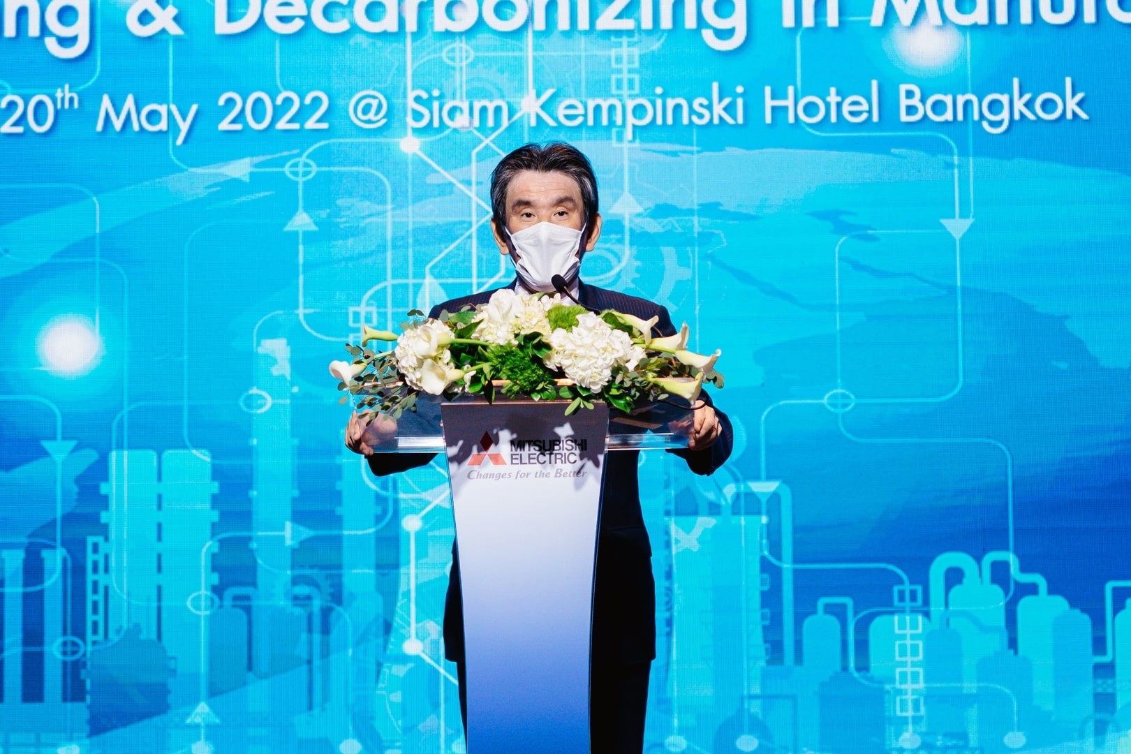 นายโคทานิ โทโมอากิ ผู้บริหารระดับสูง รองประธานกลุ่ม Factory Automation Systems บริษัท Mitsubishi Electric Corporation เผยว่า “ในช่วงไม่กี่ปีที่ผ่านมา อุตสาหกรรมการผลิตได้ปรับเปลี่ยนเป็นระบบดิจิทัลไปทั่วโลก ซึ่งสอดคล้องกับแนวคิดของ Mitsubishi Electric ที่สนับสนุนระบบการผลิตตามแนวทาง "e-F@ctory" ตั้งแต่ปี พ.ศ. 2546 ซึ่งใช้ระบบอัตโนมัติ (FA) และระบบสารสนเทศ (IT) ในโรงงาน เพื่อแก้ปัญหา และเพิ่มประสิทธิภาพของกระบวนการผลิตทั้งหมดของลูกค้ามากกว่า 40,000 เคสทั่วโลก นอกจากนี้ยังได้จัดตั้งกลุ่มพันธมิตรเครือข่ายความร่วมมือ e-F@ctory Alliance Partner Association โดยประมาณ 1,050 บริษัททั่วโลก ครอบคลุมอาเซียน ญี่ปุ่น ไต้หวัน เกาหลีใต้ อินเดีย ยุโรป และสหรัฐอเมริกา และก่อตั้งพันธมิตรในประเทศไทยในปี พ.ศ. 2562 ซึ่งปัจจุบันมีสมาชิกราว 60 บริษัท ซึ่งเราได้นำเสนอโซลูชันใหม่ภายใต้ชื่อ SMKL (Smart Manufacturing Kaizen Level) สำหรับนำเสนอแผนการจัดการโรงงานว่าควรใช้ระบบ IoT ในโรงงานถึงระดับไหน นอกเหนือจากนี้เรายังพร้อมให้การสนับสนุนด้านความรู้และเทคโนโลยีแก่ผู้ประกอบการรายใหม่ที่สนใจเรื่องระบบอัตโนมัติ ในส่วนของการรณรงค์เรื่องความเป็นกลางของคาร์บอน ซึ่งถือเป็นความเปลี่ยนแปลงครั้งใหญ่ของโลกในช่วง 1 – 2 ปีที่ผ่านมา โดยเฉพาะอย่างยิ่งผู้ผลิตรถยนต์ที่ให้ความสำคัญกับการเสริมความแข็งแกร่งให้กับระบบอัตโนมัติและการประหยัดแรงงาน เพื่อลดการปล่อยคาร์บอนไดออกไซด์ (CO2) โดย Mitsubishi Electric เป็นหนึ่งในผู้ผลิตเพียงไม่กี่รายที่มีข้อเสนอโซลูชันในด้านนี้ครบวงจร ที่รวมซอฟต์แวร์ SCADA ที่สามารถตรวจสอบจำนวนพลังงานที่โรงงานและอุปกรณ์การผลิตใช้ รวมถึงปริมาณคาร์บอนที่ปล่อยออกมา และแอปพลิเคชันสนับสนุนการประหยัดพลังงาน (Eco Advisor) เข้าไว้ด้วยกัน ซึ่งได้รับการประเมินอย่างสูงในการประกวด "Carbon Neutral" ของผู้ผลิตรถยนต์ในยุโรป ดังนั้นการที่รัฐบาลไทยได้กำหนดรูปแบบยุทธศาสตร์ระดับชาติใหม่ "แบบจำลองเศรษฐกิจ BCG1" เพื่อให้เกิดภาวะคาร์บอนเป็นกลางในปี พ.ศ. 2593 Mitsubishi Electric จึงพร้อมสนับสนุนให้ภาคอุตสาหกรรมตระหนักถึงความเป็นกลางของคาร์บอนในประเทศไทย เพิ่มเติมจากบทบาทหน้าที่ในการส่งเสริมศักยภาพของบุคลากรด้านดิจิทัลเพื่อให้พร้อมเดินหน้าสู่ระบบการผลิตอัตโนมัติ เพื่อการเติบโตที่ยั่งยืน”