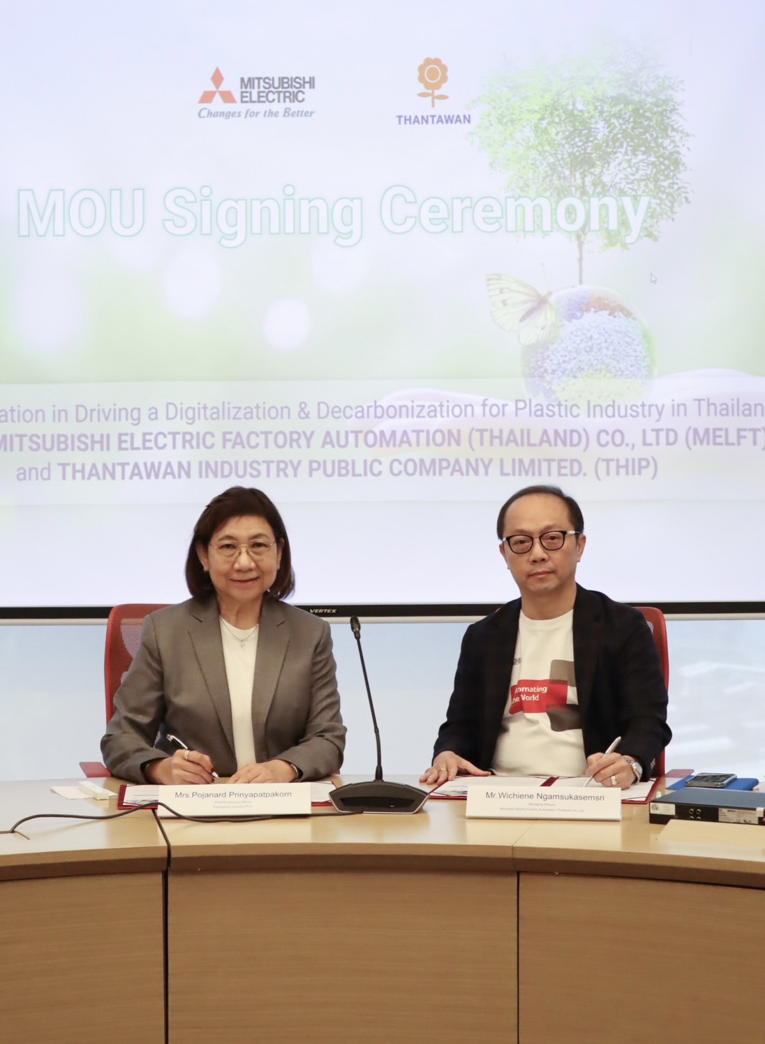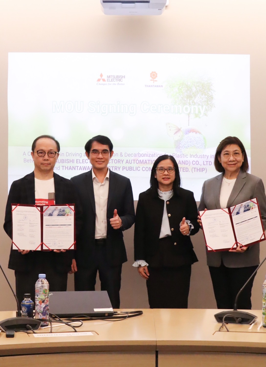 วันที่ 26 เมษายน 2566 ณ บริษัท มิตซูบิชิ อีเล็คทริค แฟคทอรี่ ออโตเมชั่น ประเทศไทย จำกัด นายวิเชียร งามสุขเกษมศรี กรรมการบริหาร บริษัท มิตซูบิชิ อีเล็คทริค แฟคทอรี่ ออโตเมชั่น (ประเทศไทย) และ นางพจนารถ ปริญภัทร์ภากร ประธานเจ้าหน้าที่บริหาร บริษัท ทานตะวันอุตสาหกรรม จำกัด (มหาชน) ได้ร่วมลงนามในบันทึกข้อตกลงความร่วมมือ (MOU) ในโครงการลดการปล่อยคาร์บอนในอุตสาหกรรมพลาสติกไทย (Decarbonization of Plastic products in Thailand) ว่าด้วยการลดการปล่อยคาร์บอนในอุตสาหกรรมพลาสติก และความร่วมมือในการเป็น Production Showcase