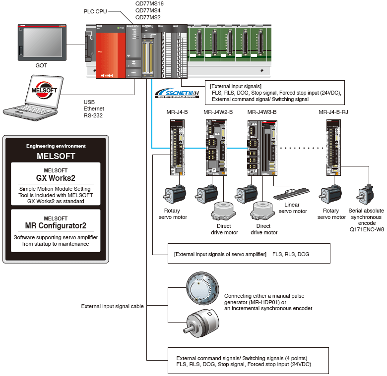 Maximum number of axes controlled by a module: up to 16 axes (QD77MS4), up to 4 axes (QD77MS4), up to 2 axes (QD77MS2).