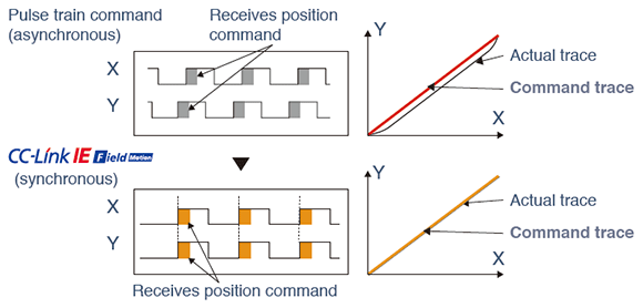 - Achieve synchronous control and cam control by using input pulses from a synchronous encoder or virtual servo amplifier.