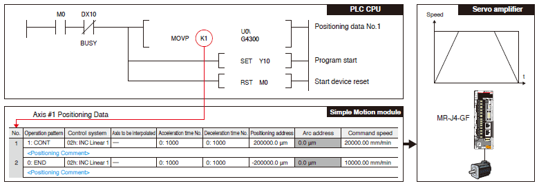 The Simple Motion module starts operation from the designated positioning data No. and continues operation until the operation pattern ends.