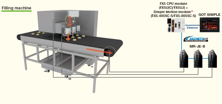 Complete deterministic and synchronized communication is achieved with SSCNET III/H, offering technical advantages in machines such as printing and food processing machines that require synchronous accuracy.
