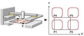 Positioning operation starts from Block start data No.1, and four squircles are drawn in this example.