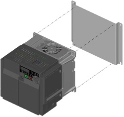 The installation size was determined to assure exchangeability with the FR-E700 series. Installation interchange attachment options are available for facilitating replacement with the models of different size.