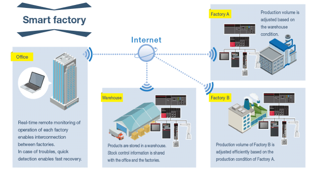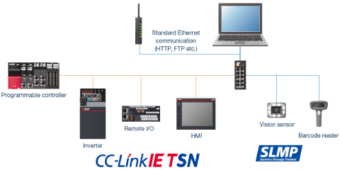 - Non-FA devices that support SLMP and TCP/IP communication can also connect to the network. Inverters can connect to a variety of devices, enabling use with versatile devices.