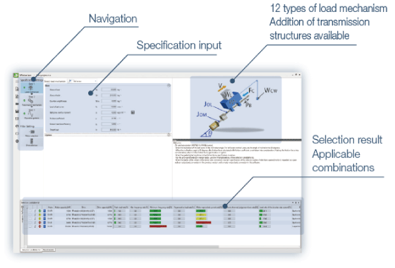 The most suitable combination can be selected from the selection result. The software also supports multi-axis systems.